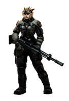 She is a Troll KSK Weapons Specialist, deadly with the long arms, she was one of Berlin's finest soldiers in the military and quite the beauty of a troll and have quite the life of a privileged Metahuman as one of her personal belongings include a real leather jacket. Her way to the top as a KSK was not without obstacles as one recruit had given her a nickname with a sexual connotation as she made an example of a recruit who called her "beautiful yet hard to climb". She was cast into the shadows when nepotism and inexperience led to being forced to work with a son of a well connected man who was responsible for the death of her squad during one of the many missions where the KSK fought to stop the Vory's influence in Germany, secretly supported by Russian covert ops and she was burnt by the German military to cover up her involvement in the operation. Eiger wasted no time ending the life of the one responsible for the mess and was forced to go to Berlin as a Shadowrunner where she was soon working with Monica. Her confrontations with the Russian Commandos extends to at one point facing an agent working for Winternight unbeknownst to Eiger.